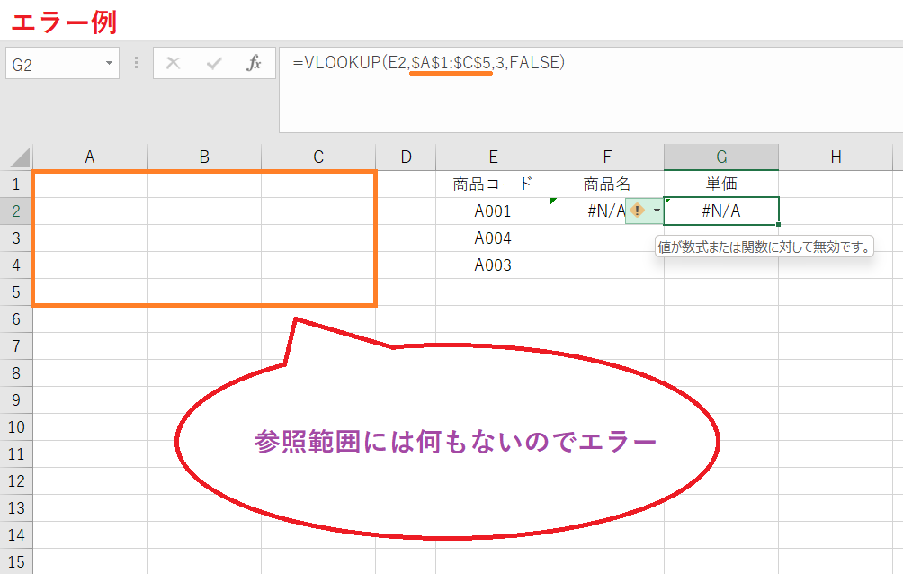 ◎VLOOKUP関数でよくあるエラー、空白・#n/a・0・#REF!などを表示しないためには?